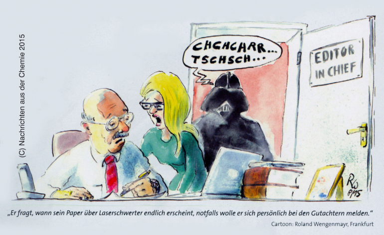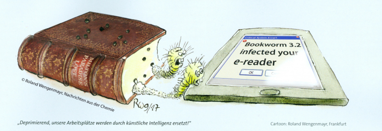 Seit vielen Jahren zeichne ich Wissenschaftscartoons, vor allem für die “Nachrichten aus der Chemie”. Dort illustrieren sie die Kolumne “Ausgeforscht” mit Wissenschaftsglossen von Michael Groß. Daraus sind zwei Bücher entstanden, das letzte ist Tabakschwärmer, Bücherwürmer und Turbo-Socken