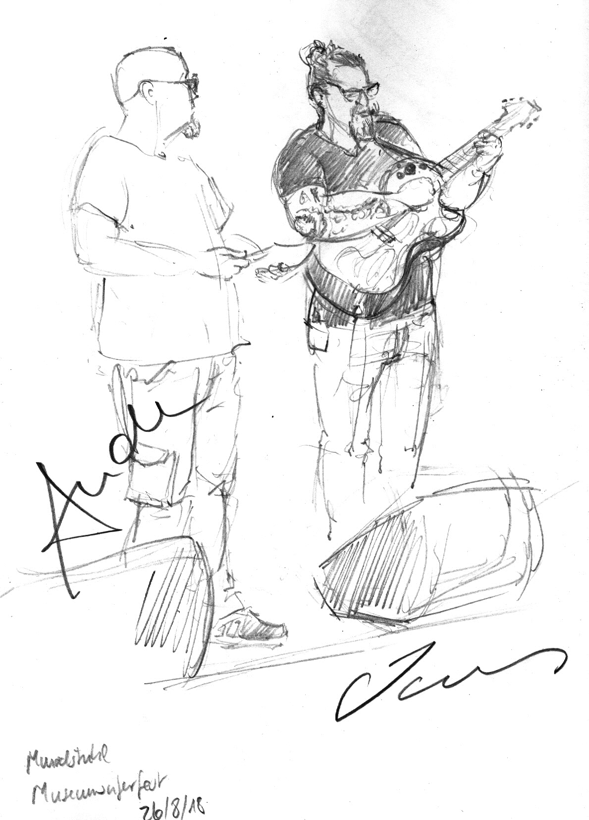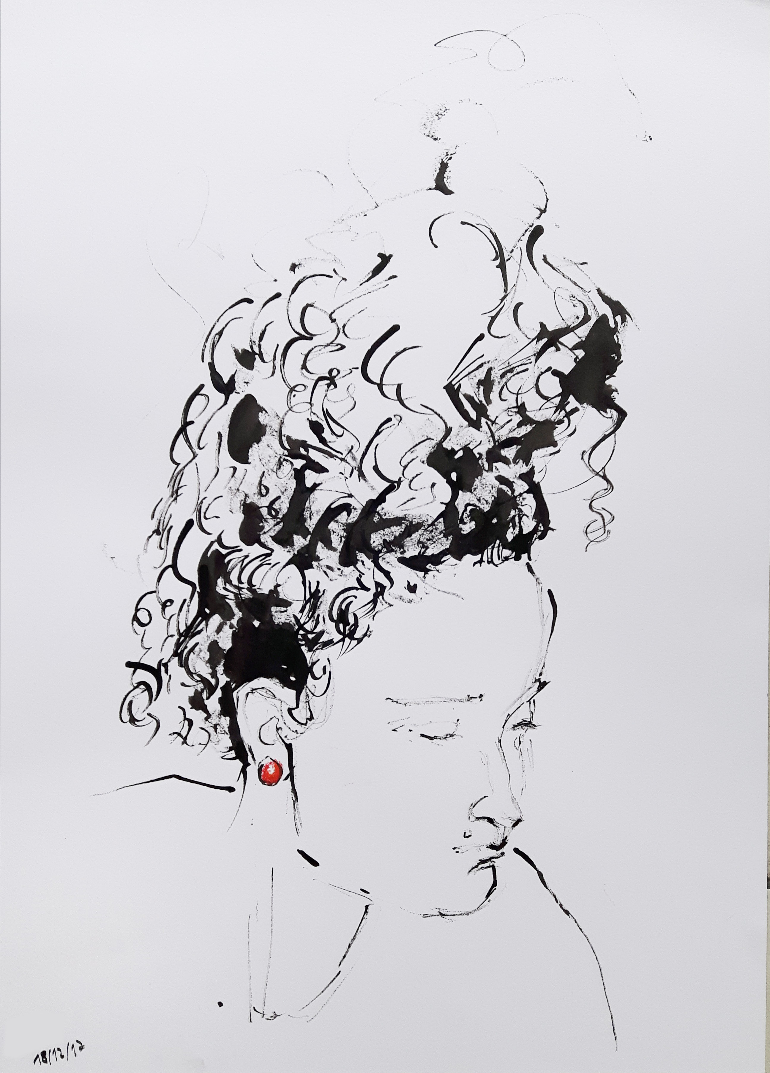 Für ein Interview zu einer Ausstellung habe ich einmal abgeschätzt, dass ich damals schon mehrere tausend Menschen gezeichnet hatte. Das ist fast zwanzig Jahre her. Mein Skizzenbuch habe ich immer dabei - krikel, krakel, schon ist wieder jemand drin. Besonders wichtig sind mir aber meine mit Tusche und Rohrfeder gezeichneten Portraits. Das Zeichnen und Malen von Portraits ist eine alte Sache. Und doch fasziniert sie mich immer wieder, diese intensive Begegnung von Mensch zu Mensch.